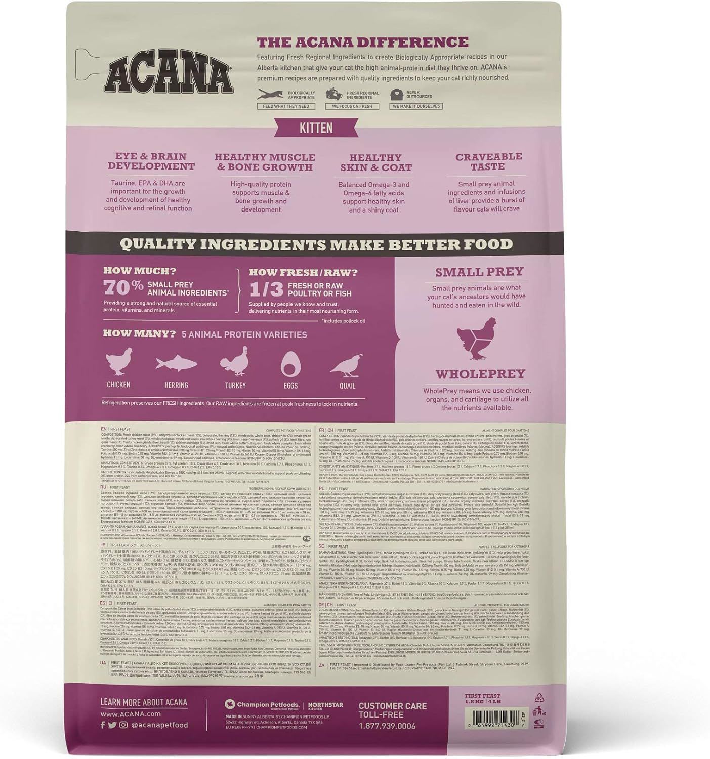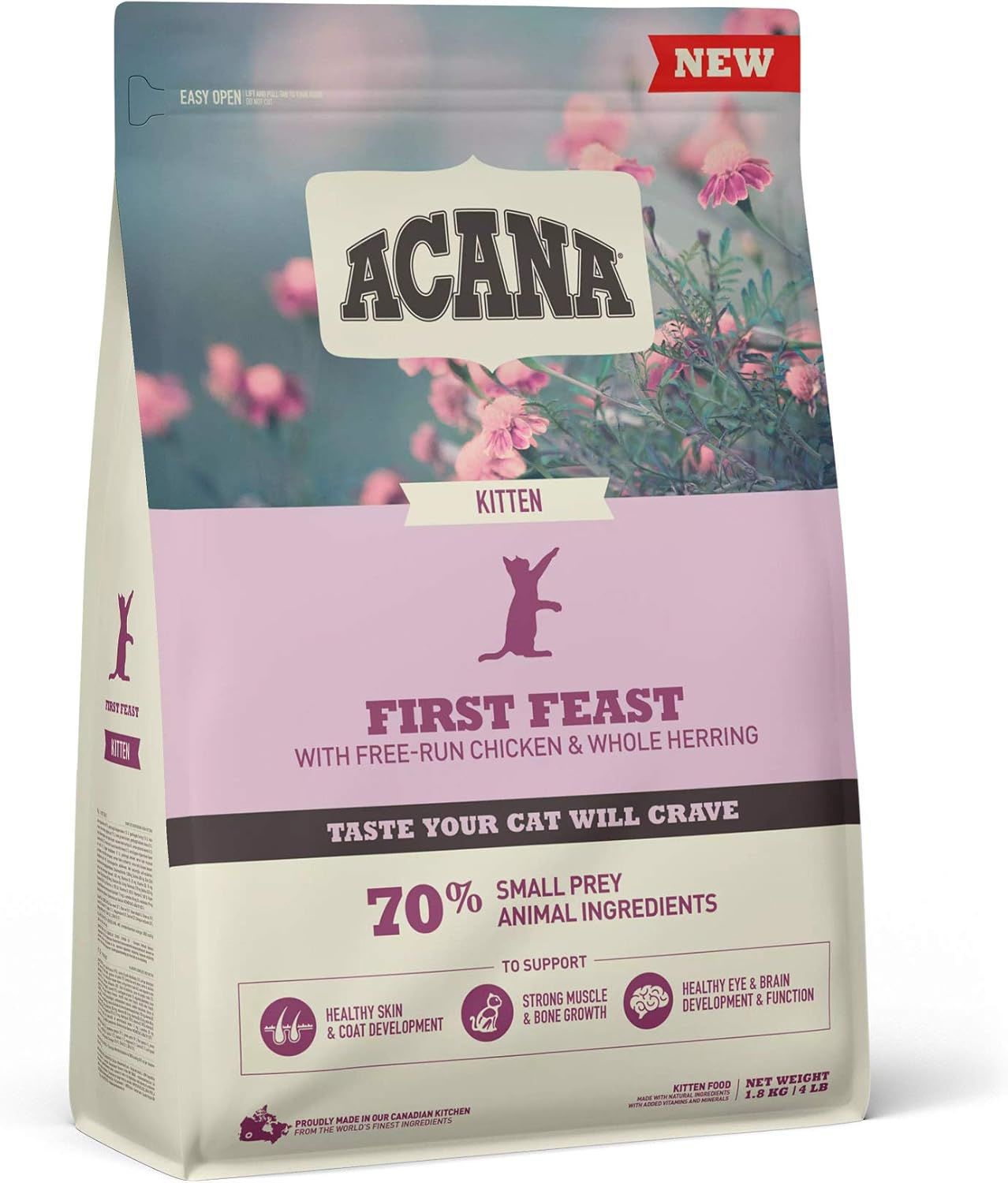 Specially crafted for your kitten, our ACANA™ First Feast Recipe helps support your kitten’s growth and development.