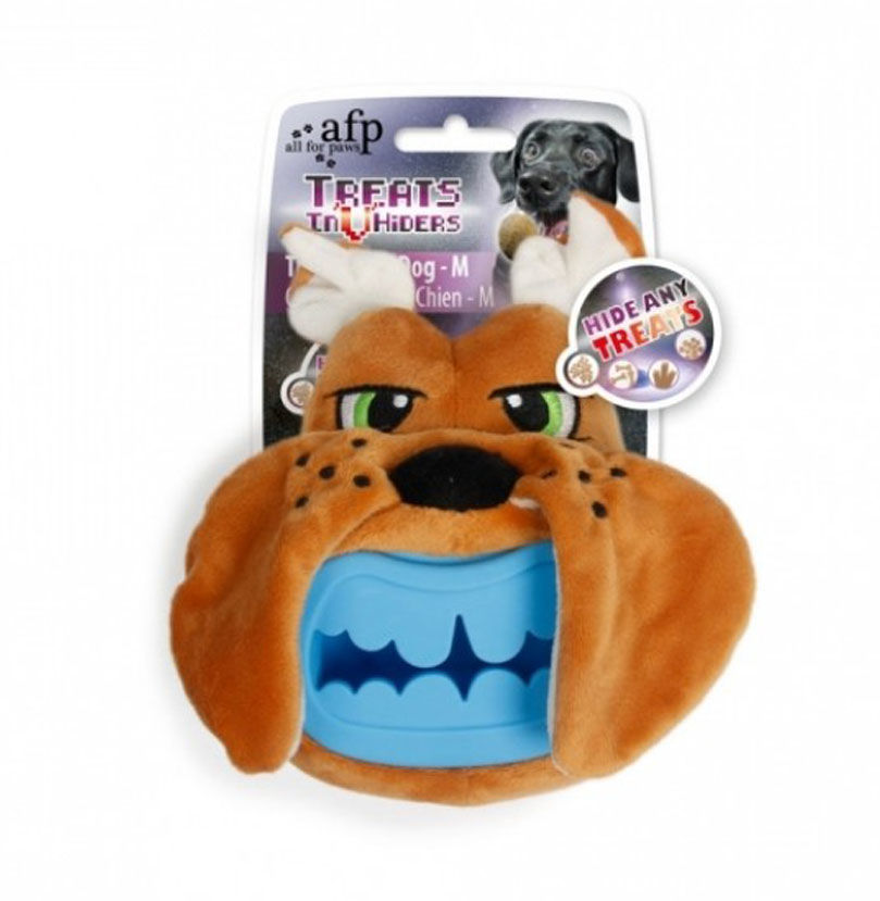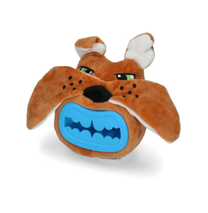 Cute playful plush characters with a twist, a big rubbery mouth where treats can be hidden.