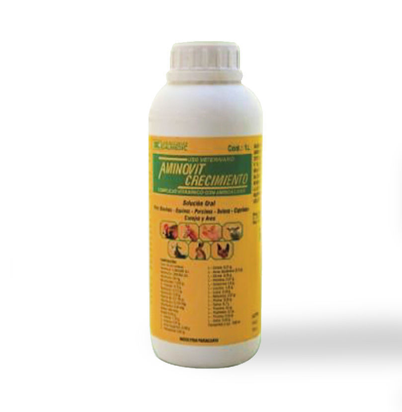 Aminovit Crecimiento is indicated for nutritional imbalances and deficiencies, during periods of stress, in the moulting of birds and the viability of the chicks, in the stages of decreased strength and energy, in states of depauperation and convalescence of animals. In the gestation and lactation periods. Considerably improves conversion index and production of the animals. In fat liver syndrome and intensive reproduction ranges.