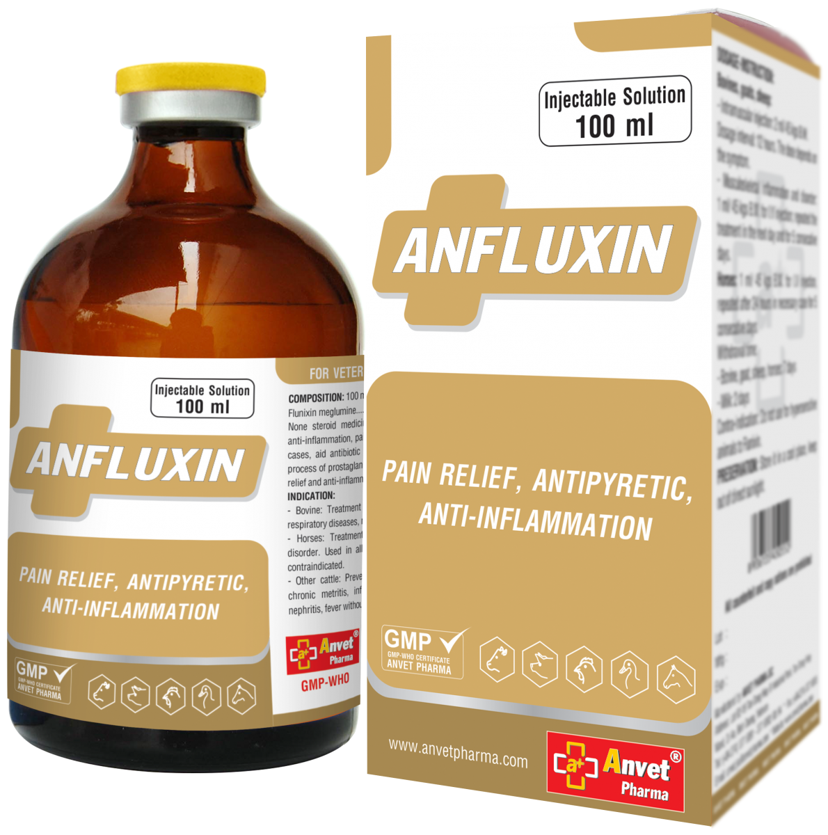 COMPOSITION: Flunixin INDICATION: Cattle, buffalos: Treatment of pneumonia, mastitis, metritis. Swine: prevention & treatment of MMA syndrome (metritis, mastitis, agalactosis) in sows. Prevention of chronic metritis, pneumonia, nephritis, fever with unknown reasons. Horses: treatment of inflammation combined with musculoskeletal changes. Use in all the cases if corticosteroid therapy is contraindicated. DOSAGE Swine, bovines, goats, sheep: Intramuscular injection: 2 ml/ 45 kg B.W; can be repeated 1 - 2 times after 12 hours. The dose depends on the symptoms. Musculoskeletal inflammation and changes: 1 ml/ 45 kg B.W for intravenous injection; repeated the treatment in the next day and for 5 consecutive days. Horses: 1 ml/ 45 kg B.W for intravenous injection, repeated after 24 hours if necessary and for 5 consecutive days. PRESERVATION: Store in a cool place and keep out of direct sunlight. FOR VETERINARY USE ONLY