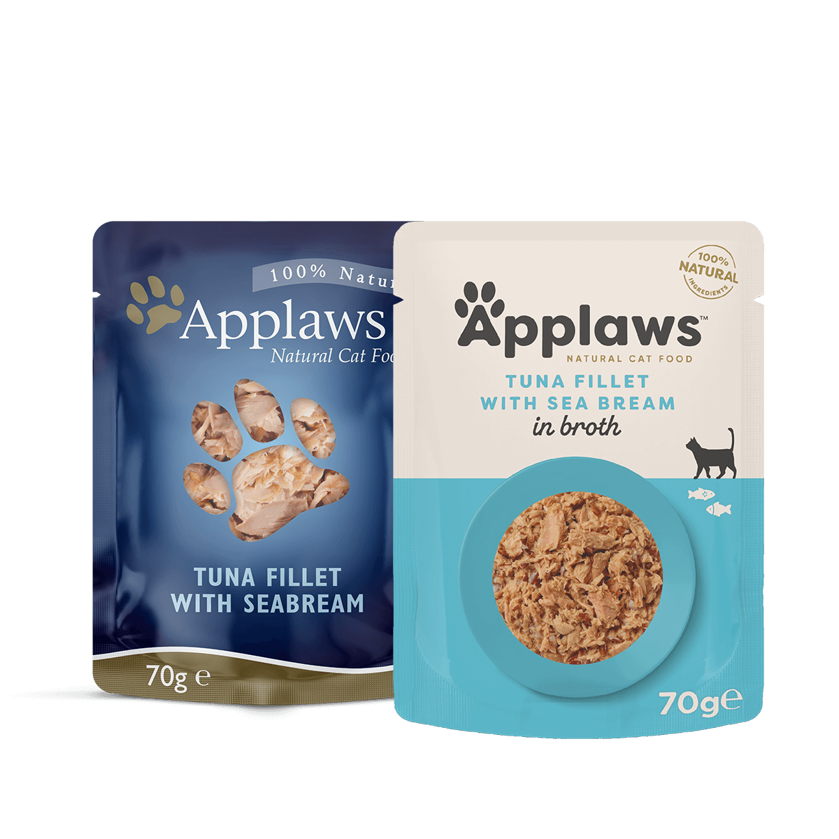 Cat wet food. Applaws Tuna Fillet with Sea Bream in Broth is a 100% natural complementary pet food for adult cats that contains nothing more than the ingredients listed.