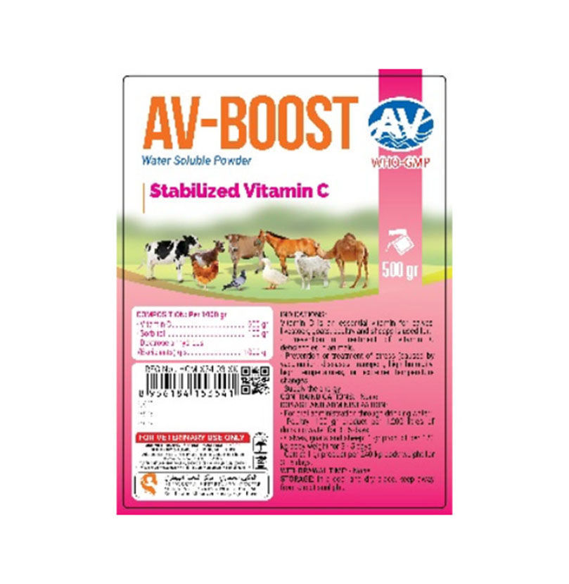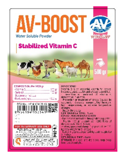 AV-Boost is a water-soluble Vitamin C supplement designed to enhance immunity, support recovery, and reduce stress in poultry, cattle, sheep, goats, and calves. This stabilized Vitamin C formulation plays a vital role in preventing deficiencies, boosting resistance to diseases, and improving overall energy levels. Its easy-to-mix powder form ensures seamless integration into drinking water, making administration hassle-free.