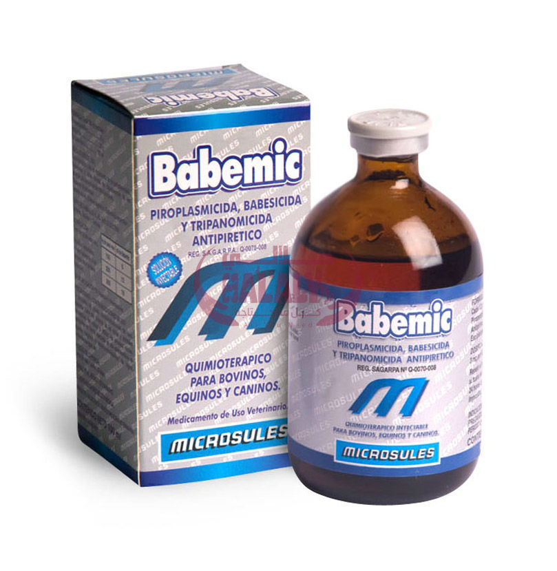 Babemic is a chemotherapic drug for the treatment of pyroplasmosis, babeosis and other forms of trypanosoma, as well as the associated fever.
