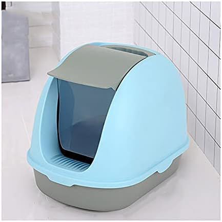 The two-tone blue and grey color scheme offers a contemporary aesthetic, while the enclosed design provides privacy for cats and helps contain litter scatter.