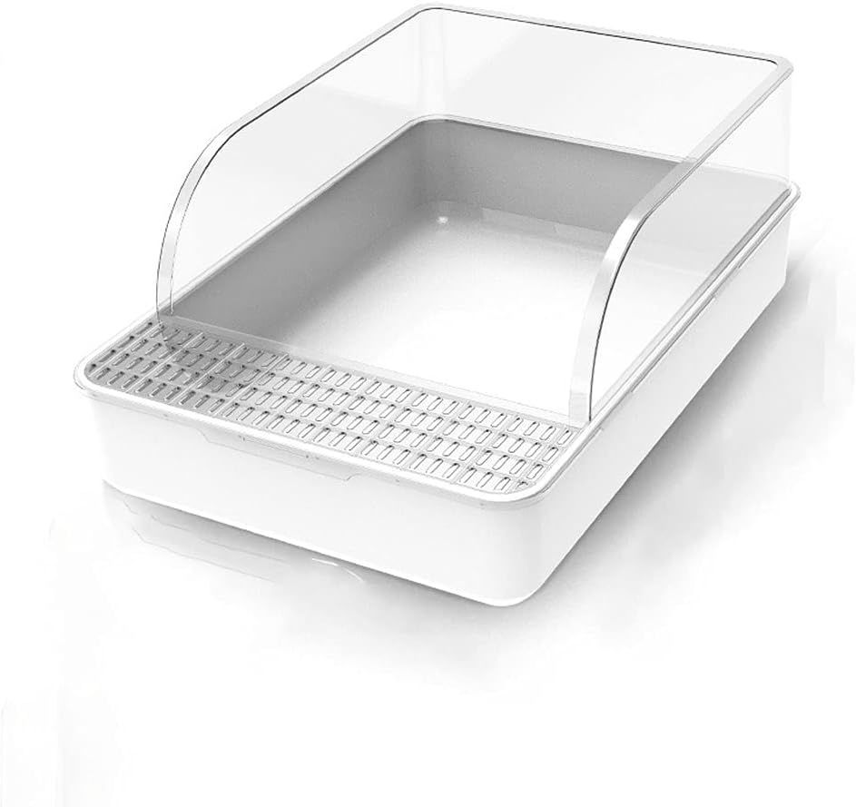 This white litter box includes a protective cover and a textured platform to help reduce litter tracking, making it an ideal solution for indoor cats.