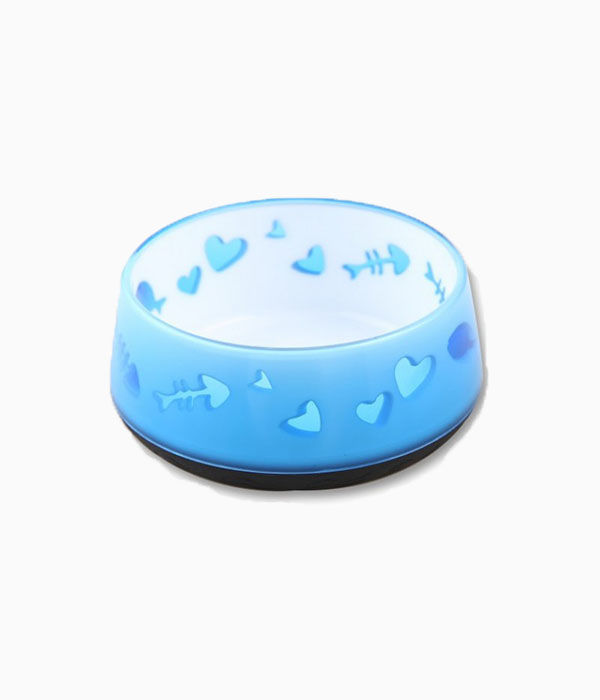 This blue unique cat love bowl is perfect for feeding or providing feline fresh water. It features fish and love cut out alongside the outer edges, providing a small tough of style. With the bright color, the cat will love it.