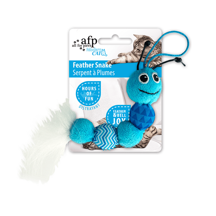 Cat will jump at the chance to get her paws on this feather snake.
