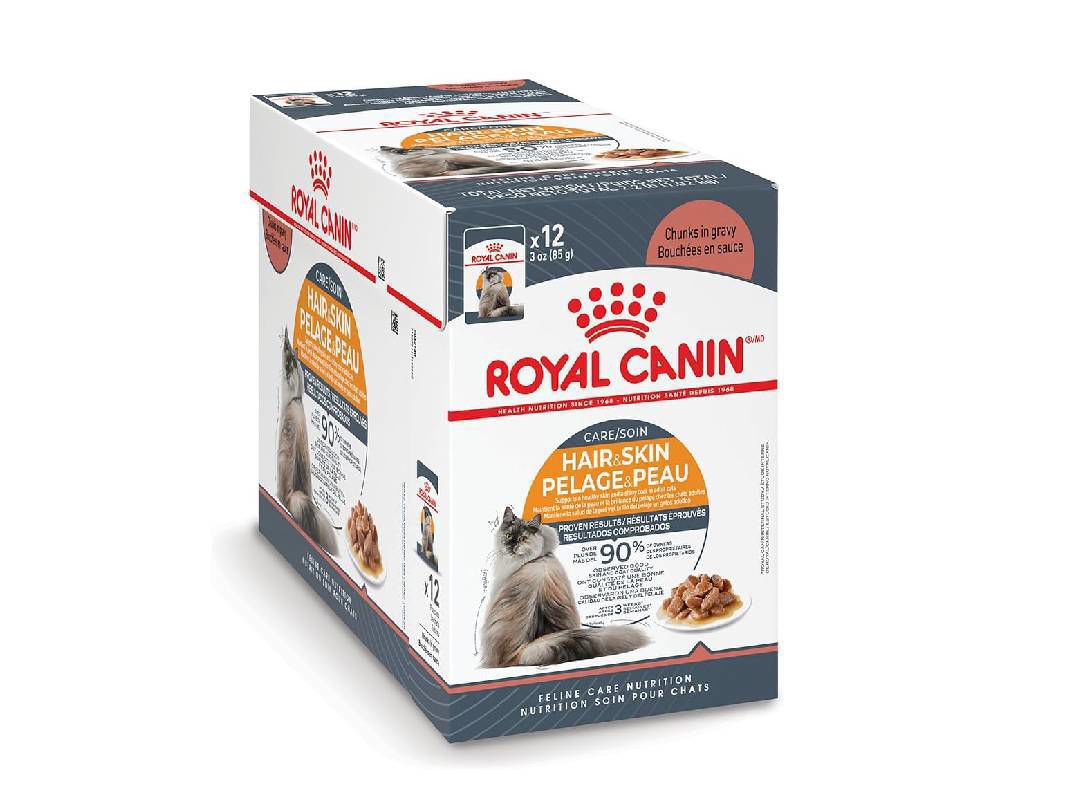 ROYAL CANIN® Hair & Skin Care in Gravy is a nutritionally complete and balanced formula specially designed to support your cat’s skin and coat health. This formula contains omega-3 fatty acids – including EPA and DHA – and omega-6 fatty acids to help support and nourish your cat’s skin and coat from the inside out. ROYAL CANIN® Hair & Skin Care has proven results. Our study* showed that over 90% of owners observed good skin and coat quality after just 3 weeks of being fed with the Hair & Skin Care nutritional programme (combining both the dry kibble and wet food formulas). ROYAL CANIN® Hair & Skin Care is also available in jelly or loaf or as a dry kibble diet. A mixture of both wet food and dry food provides the variety cats love. *Royal Canin internal study