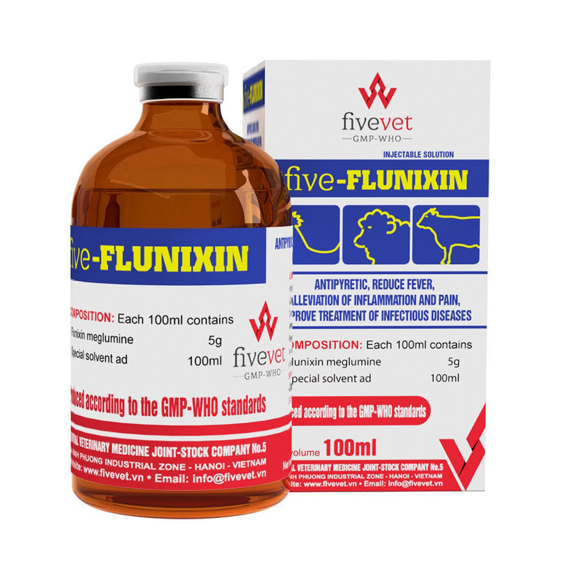 -Cattle: Five-Flunixin using with antibiotics will improve efficiency of the treatment of pneumonia, actinobacillus pleuropneumonia, mastitis, metritis, arthritis, toenail infections.