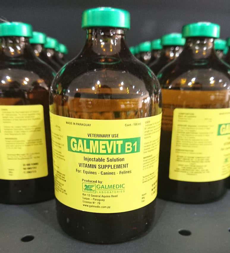 Galmevit is a potent and effective Vitamin B1 supplement that contains 500 mg of Thiamine HCl per each ml of the drug. Thiamine is an essential nutrient that plays a critical role in many crucial bodily functions, including metabolism, the production of energy, and the proper functioning of the nervous system.
