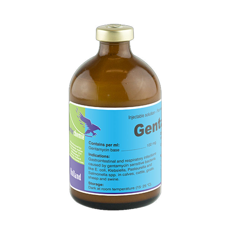 Gentamycin belongs to the group of aminoglycosides and acts bactericidal against mainly Gram-negative bacteria like E. coli, Klebsiella, Pasteurella and Salmonella spp. The bactericidal action is based on inhibition of bacterial protein synthesis.