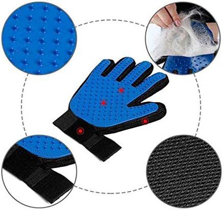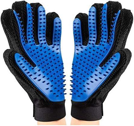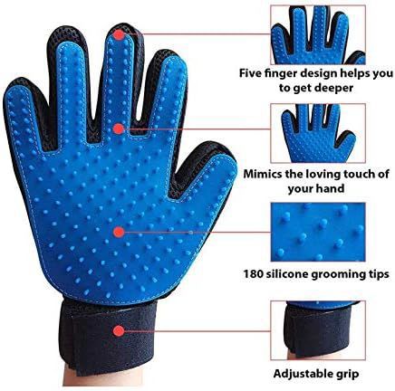 The glove's blue silicone surface features strategically placed nodules that help remove loose fur while providing a soothing massage effect.