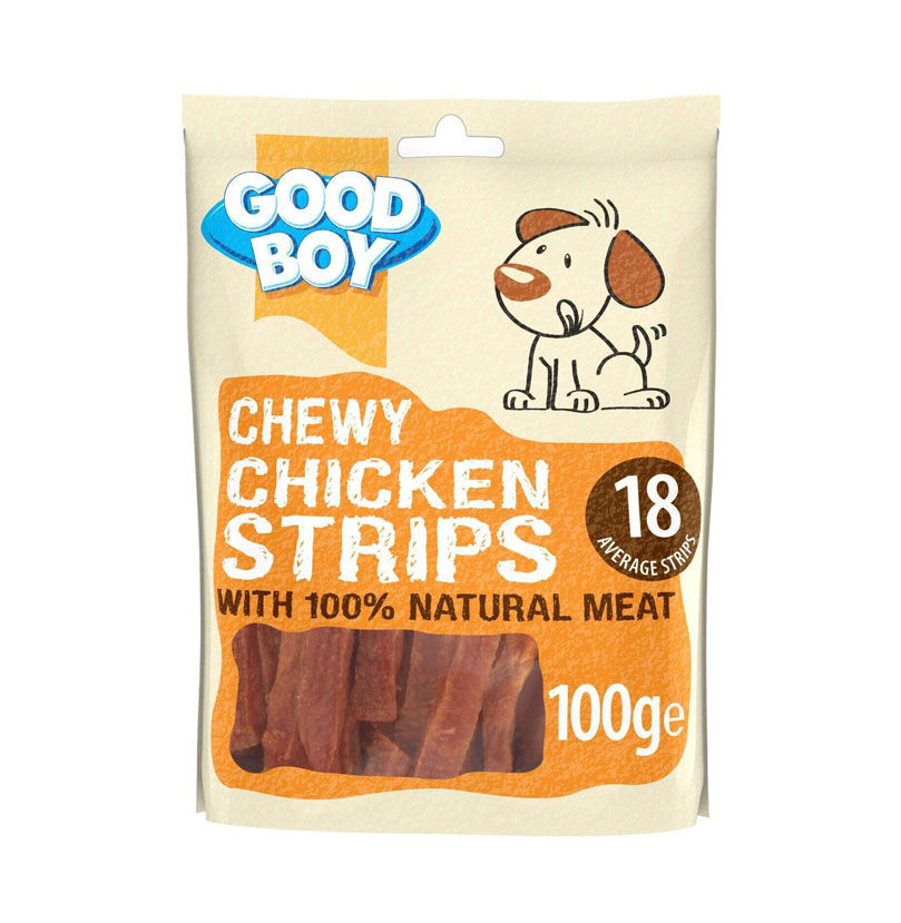 Chicken Strips: Chicken Breast (87%), Glycerin, Pea Protein, Corn Starch, Salt, Crude Protein 45%, Fat Content 2%, Crude Fibres 1%, Crude Ash 5.5%, Moisture 23%