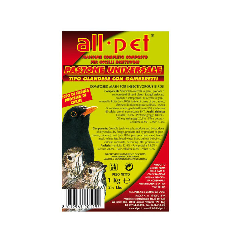Harmony All Pet is a universal pastone, composed mash for insectivorous birds, a complete feed for Blackbirds, Maine, Japanese Nightingales, Thrushes,