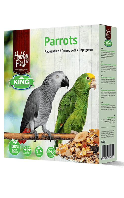 Hobby First King ParrotsThis combination of pure, natural ingredients has been carefully and balanced to meet the nutritional needs of all types of parrots and macaws. This mixture provides a balanced source of nutrition for your birds and can contribute to their overall health and well-being.Contains a variety of healthy nutrients, such as protein, fiber, vitamins and minerals. Can help strengthen your birds' immune system and maintain healthy digestion. A tasty and nutritious meal for your birds and can contribute to an increased appetite and overall satisfaction.