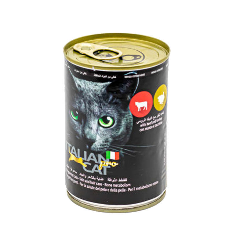 Italian Cat Chunks in Gravy with Beef and Turkey wet food for cats.