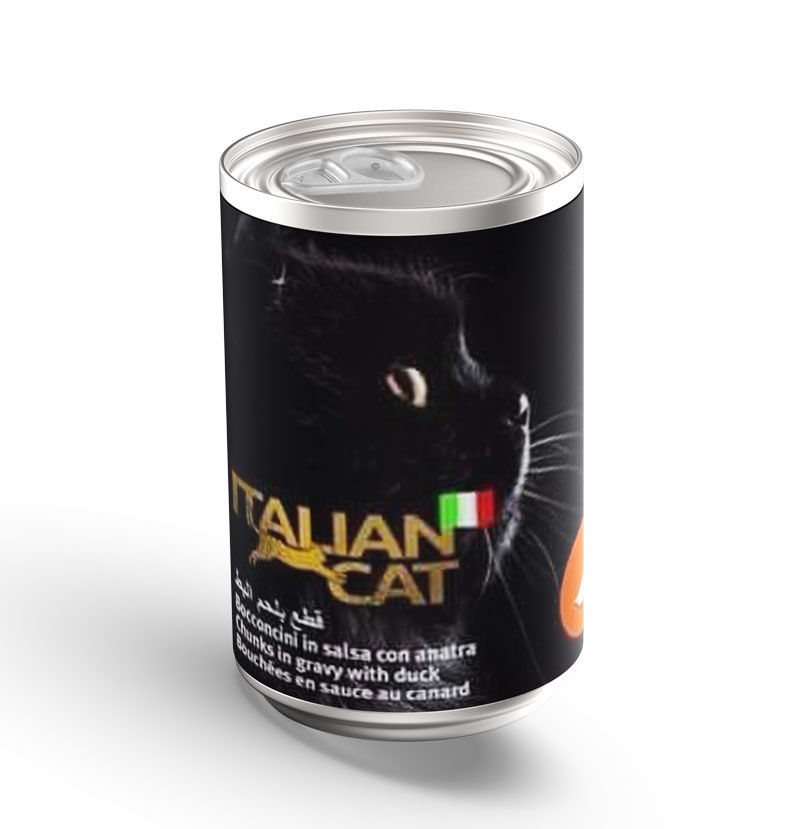 Italy Cat Food - Giuntini Italian presents Italian Cat Food with Duck, a steamed-cooked wet food for gourmet cats.