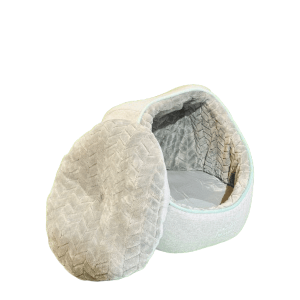 Bed with Built-In Reversible Cushion Washable Round Diameter 40 x 27 cm Light Grey/Mint With Built-In Reversible Cushion.