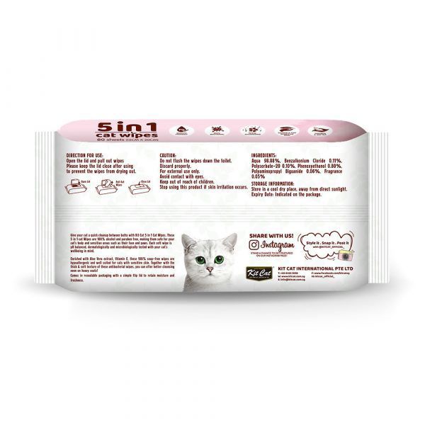 Kit Cat 5-in-1 Cat Wipes Baby Powder 80pcs are designed to provide gentle and thorough cleaning for your cat.