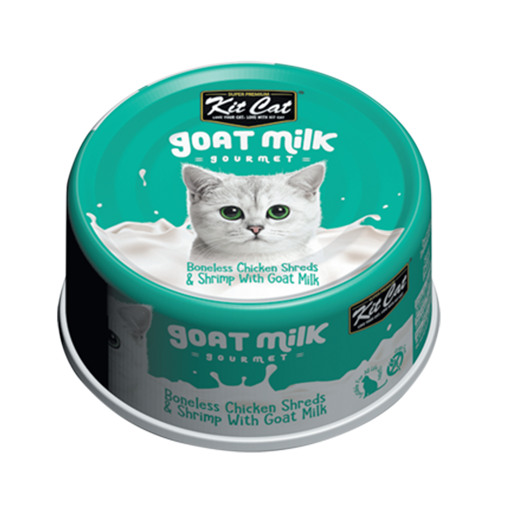 Kit Cat Boneless Chicken Shreds & Shrimp with Goat Milk is a premium wet cat food that combines tender chicken shreds and shrimp in a nourishing goat milk formula.