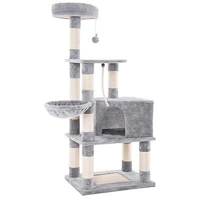 Endless fun – this cat tree offers everything and more: a sleeping area, a ladder, scratching posts and a platform for laying on to create a complete piece of cat furniture for your cat or kitten. Safe – Made from 100% environmentally friendly materials. This Kitty Tower is completely harmless to your cat. baseboard provides ultimate stability for the safety of your cat friends! Compact and portable: 60x45x148cm. Our cat tree is a real space saver and can be easily transported. Comfortable – Soft plush cushion and ladder keep the cat warm and comfortable all year round. Pressed wooden columns covered with natural sisal make it a perfect tool to maintain claws. Easy installation – with an instruction manual and all necessary