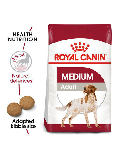 ROYAL CANIN Medium Adult is specially formulated to meet the nutritional needs of your medium-sized adult dog and is suitable for dogs between 1 and 7 years old weighing between 11 and 25 kg.