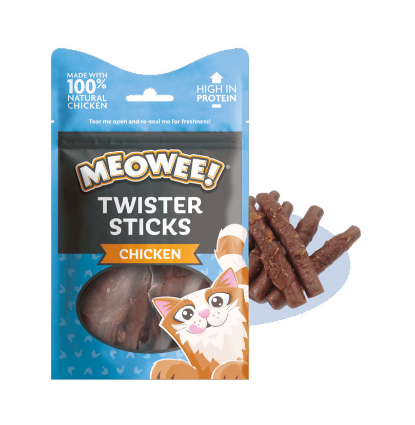 These Chicken Twister Sticks contain no artificial colours or flavours and are an absolute meat feast for your cat, made with 100% natural chicken and wrapped in delicious chicken breast for double the purrs! They're deliciously chewy, long lasting treats that are perfect hand feeding fun for the whole family and are high in protein for a happy cat inside and out.