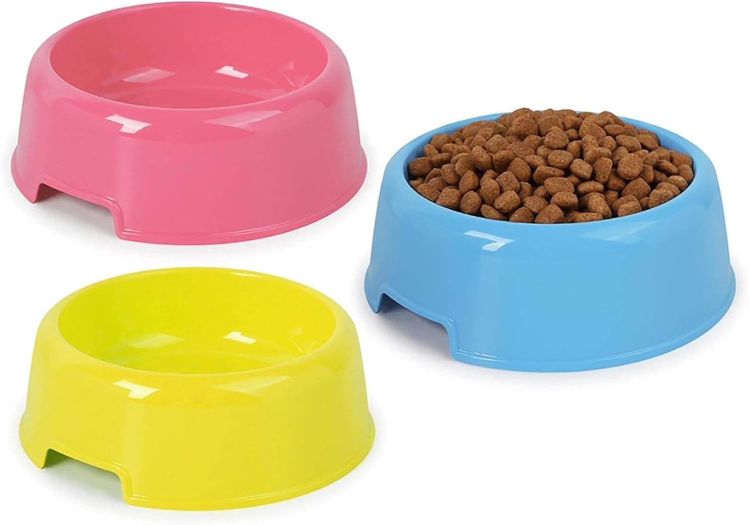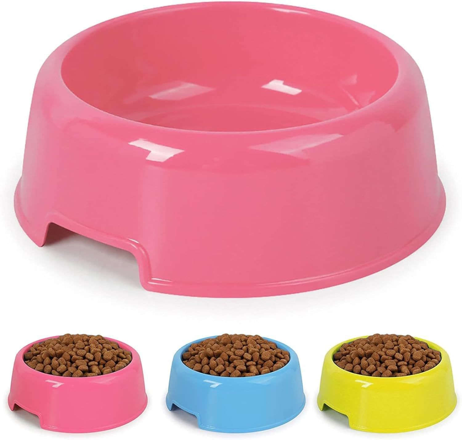 Plastic Single Pet Bowl - Anti-Slip Base Food & Water Feeders, Thickened Plastic, Round Candy-Colored Cat & Dog Bowls for Small Pets.