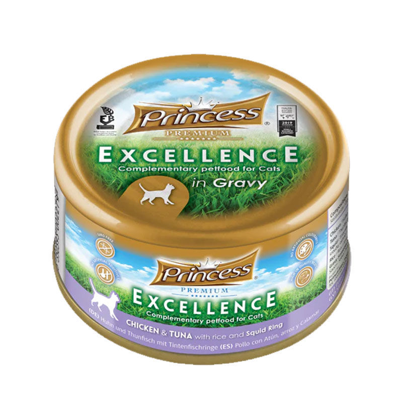 princess excellence cat food chicken & tuna with rice and squid ring 70g