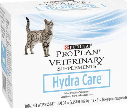 The addition of PURINA PRO PLAN HC Hydra Care to the cat’s diet could help increase water intake.