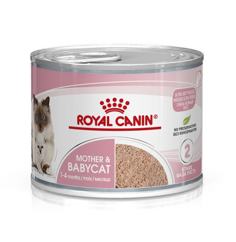 ROYAL CANIN® Mother & Babycat Loaf is formulated with the nutritional needs of the mother and her kittens in mind. This food is suitable for gestating or lactating queens as well as 1 to 4 month old kittens during their 1st age. Between 4 and 12 weeks after birth, the natural immunity acquired from the mother's colostrum (a milky secretion rich in protective antibodies) gradually decreases. ROYAL CANIN® Mother & Babycat contains a complex of antioxidants, including vitamin E, which helps to support the kittens' natural defences while their immune systems are still developing. ROYAL CANIN® Mother & Babycat Loaf is ultra-soft with a delicate mousse texture for easy chewing and effective rehydration. ROYAL CANIN® Mother & Babycat Loaf is also designed to match the optimal nutritional profile instinctively preferred by kittens - making weaning and mealtime routines much easier for the consistent intake of nutrients your kitten needs. To cater to each cat's individual preferences, ROYAL CANIN® Mother & Babycat is also available as dry food, in a tasty and crunchy kibble. If you're considering mixed feeding, simply follow our feeding guidelines to ensure your cat gets an accurate amount of both wet and dry food for optimal benefit.