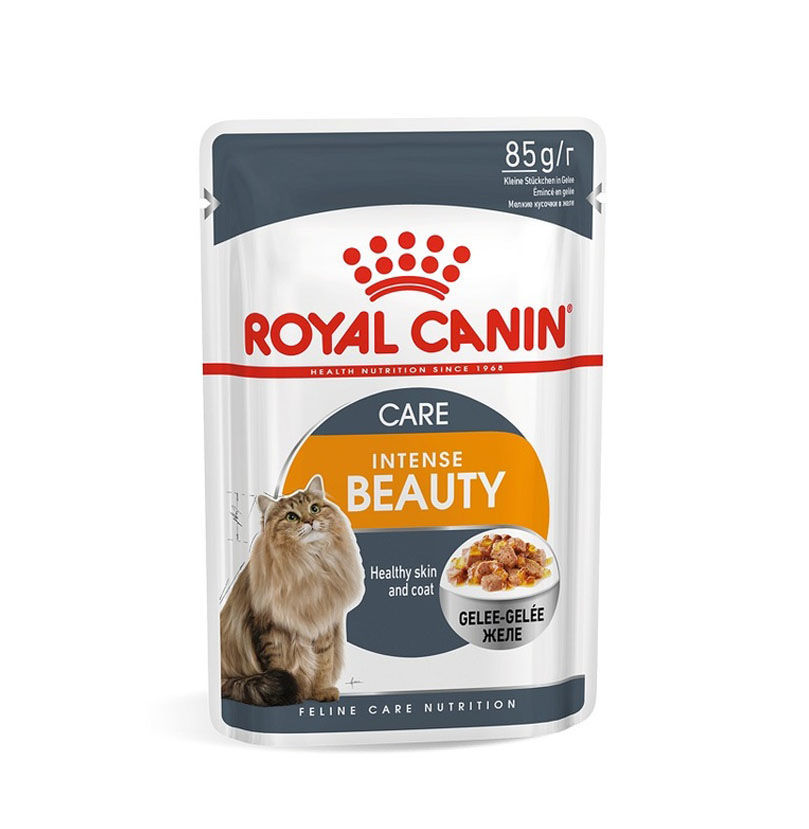 Your cat's coat is a thing of beauty, which is why consuming an ideal level of nutrients is essential, otherwise the general health and appearance of its coat can be less than optimal. ROYAL CANIN® Intense Beauty in Jelly contains a complex of antioxidants and fatty acids (omega-3 & omega-6) specially formulated to help support and maintain the beauty and health of your cat's coat, as well as its skin. ROYAL CANIN® Intense Beauty in Jelly also helps your cat maintain an ideal weight - with a fat content of just 3.7% to prevent excess weight gain, and an optimal level of protein to contribute to healthy muscular growth and development. A healthy urinary system is also supported by ROYAL CANIN® Intense Beauty in Jelly, it helps maintain your cat's bladder function. To cater to each cat's individual preferences, ROYAL CANIN® Intense Beauty is also available as dry food, with crunchy and tasty kibble. If you're considering mixed feeding, simply follow our feeding guidelines to ensure your cat gets an accurate amount of both wet and dry food for optimal benefit.