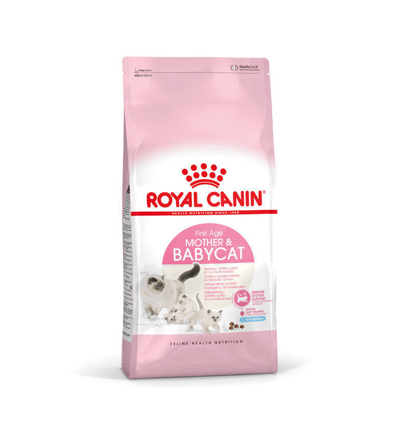 If your cat is pregnant or has given birth recently, both she and her kittens must have the correct nutritional support to ensure continued health for the mother, and the best start possible for the kittens. ROYAL CANIN® Mother & Babycat cat food is formulated with the nutritional needs of the mother and her kittens in mind. Suitable for gestating/lactating queens as well as 1-4-month-old kittens, Royal Canin mother & baby cat contains a complex of antioxidants that help to support the kittens' natural defenses. The soft texture of the kibble makes it easy for the kittens to chew and swallow, allowing them to get used to solid food as part of their diet. ROYAL CANIN® Mother & Babycat dry food is specially enhanced for digestive tolerance as it reduces the number of undigested nutrients. It's enriched with DHA, which is a natural omega-3 fatty acid that helps to support your kitten's general brain development. To cater to each cat's individual preferences, ROYAL CANIN® Mother & Babycat cat food is also available as an ultra-soft mousse. If you're considering mixed feeding, simply follow our feeding guidelines to ensure your cat gets an accurate amount of both wet and dry food for optimal benefit.