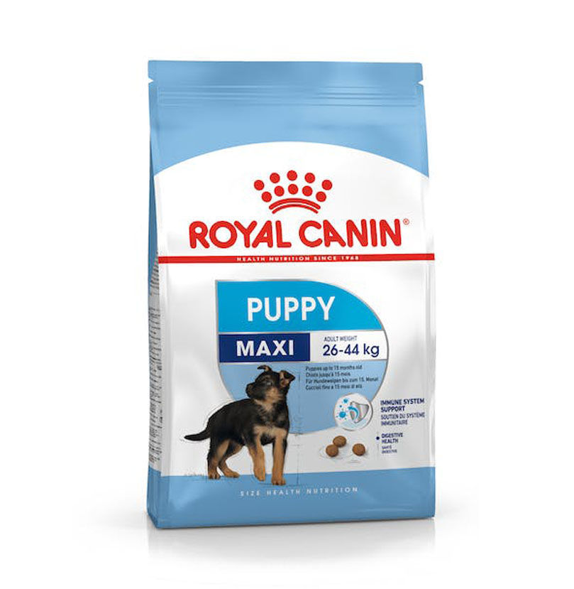 ROYAL CANIN® Maxi Puppy is specially formulated with the nutritional needs of your large puppy in mind. This food is suitable for large puppies from 2 to 15 months old that will have an adult weight of approximately 26kg-44kg. ROYAL CANIN® Maxi Puppy food contains a patented complex of antioxidants - including the highly beneficial vitamin E - to support your puppy's natural defences while its immune system is immature and still developing. The combination of nutrients that contain high quality protein (such as L.I.P., known for its very high digestibility) as well as prebiotics like FOS help to support your puppy's digestive health Large puppies have a long growth period, that's why they need a diet that accounts for the implications of this period. Fortunately, ROYAL CANIN® Maxi Puppy contains a moderate energy level to meet your puppy's energy needs. A variation of ROYAL CANIN® Maxi Puppy dry food is also available depending on your puppy's lifestyle. If your large puppy is quite active then it will have higher energy needs, if this is the case then why not try ROYAL CANIN® Maxi Puppy Active.