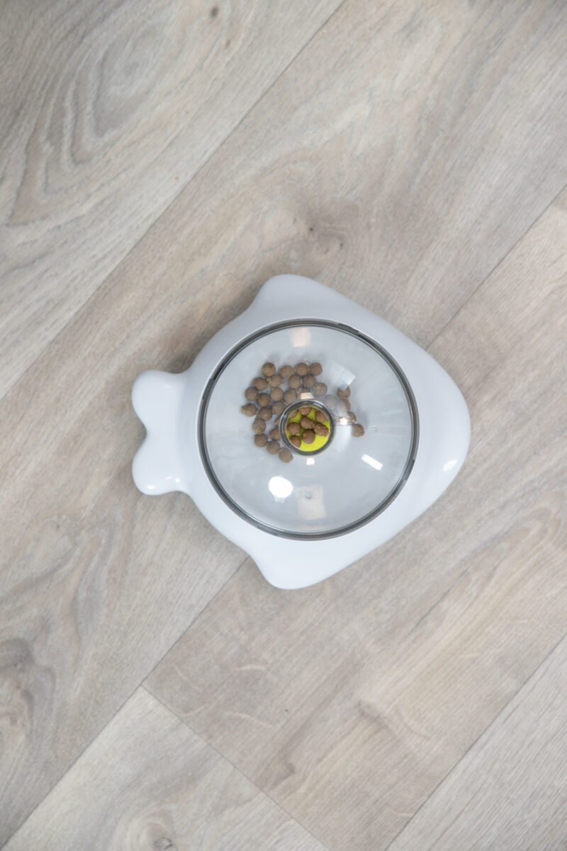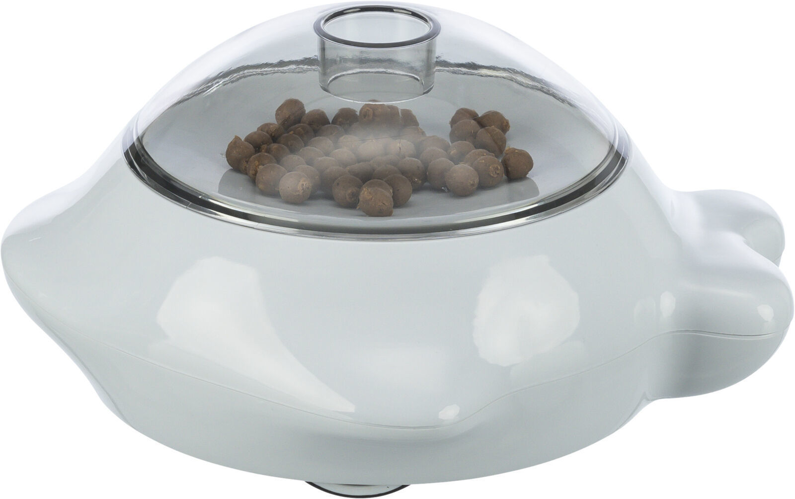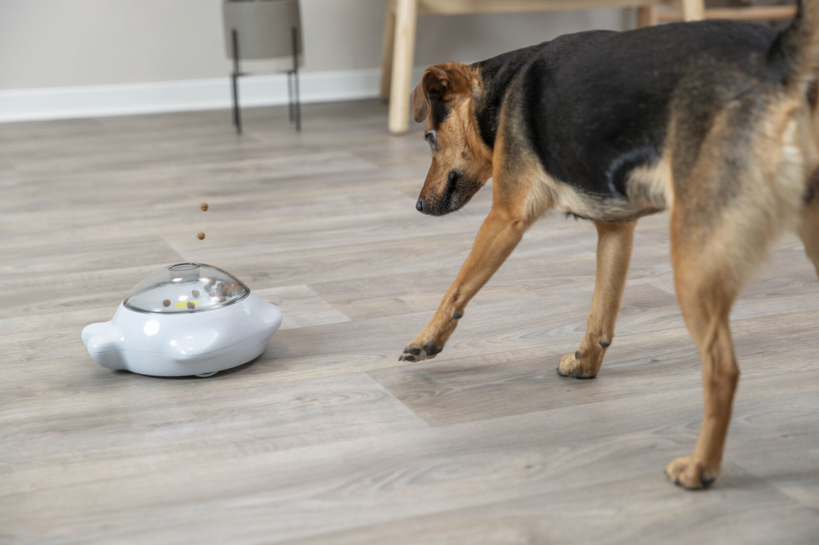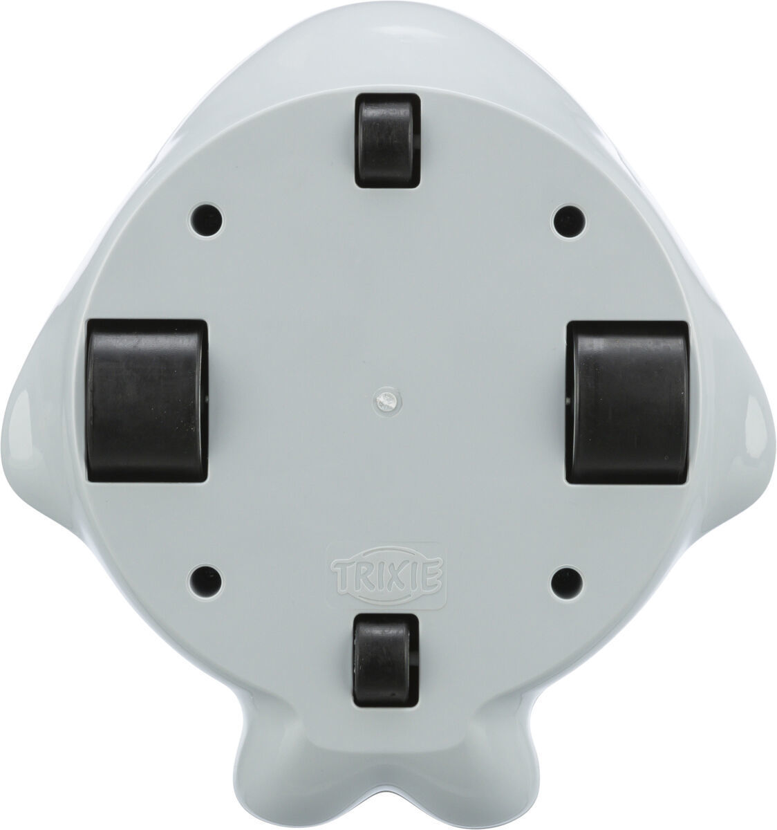 By pushing forward or backward, treats are ejected mechanically (no battery operation)
