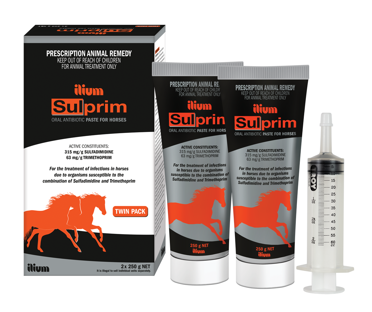Ilium Sulprim Paste is a prescription oral antibiotic containing Sulfadimidine (310 mg/g) and Trimethoprim (63 mg/g) in a palatable paste form.