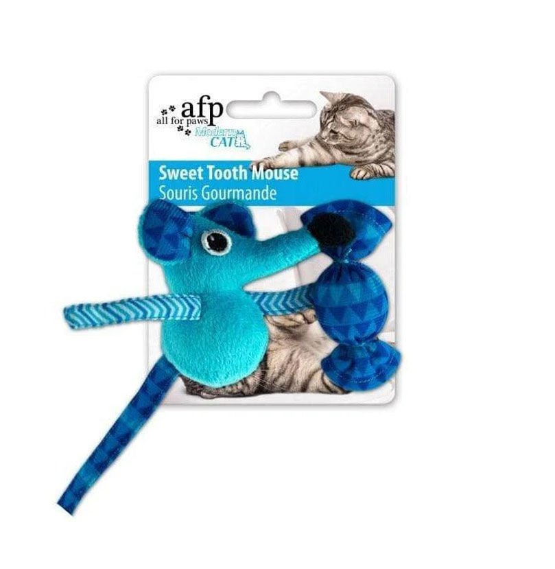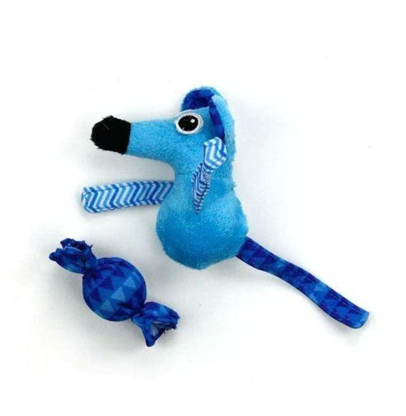 Cats are naturally drawn to the crinkle sound and premium catnip of this blue sweet tooth mouse. Watching the natural hunting instinct take over as your cat tackles, bats and chases the uniquely designed sweet tooth mouse.
