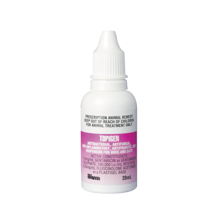 To be used on the skin and ears of dogs and cats for antibacterial, antifungal, anti-inflammatory and anipruritic purposes. 1.6mg/ml + 100,000i.u/ml + 0.25mg/ml