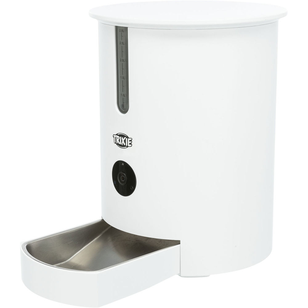 Programming of up to 6 meals per day For up to 2.8 l dry feed Control via App Integrated wide-angle camera with infrared night vision and motion detection allows taking photos and video at any time as well as live-stream videos Microphone and loudspeakers allow interaction with the pet