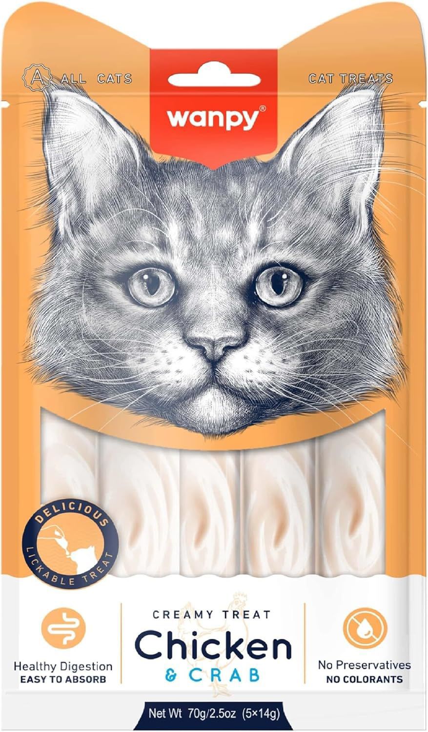 Wanpy Creamy Treat combines chicken and crab flavors in a smooth, lickable texture that cats love.